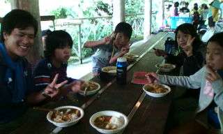 カレー作り続編。とうとうカレーライスが出来上がりました。苦労して作った分,おいしくできあがりました。お腹一杯食べて,元気をつけてね。いただきます。