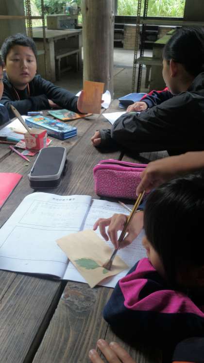 ただ今「木はがき作り」をしています。仕上がった「木はがき」に文を書き4日目に投函する予定です。どんなはがきが届くか,楽しみですね。