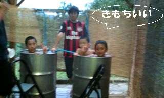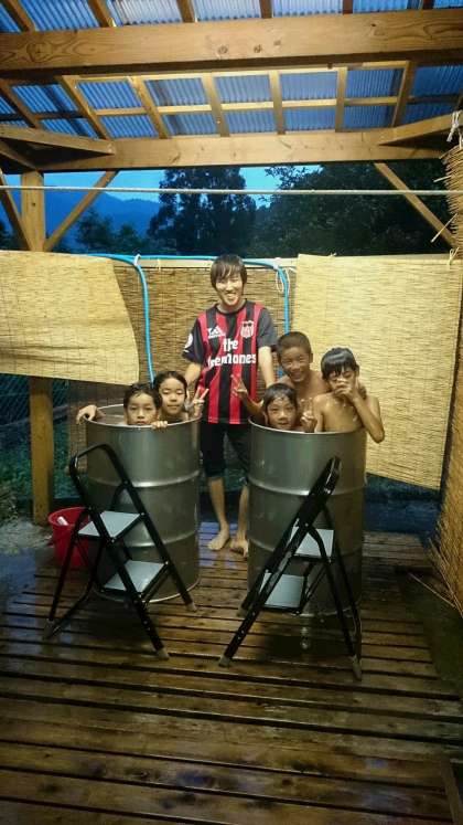 晩ご飯の後は,ドラム缶風呂に入って汗を流します。