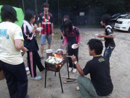 お肉をたっぷり食べておなかいっぱいになりました。野菜類が大量に残っている班もありましたが,焼きおにぎりなど工夫して食べている班が目立ちました。