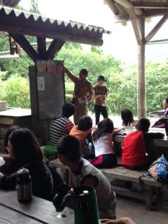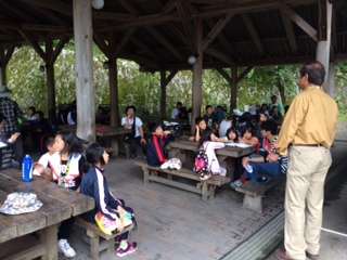 今日のお昼は野外パーティー。バイキングで各グループでいろいろなお料理を作ります。