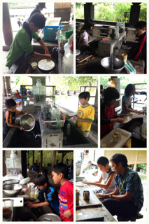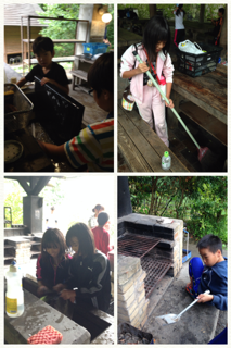 野外パーティーが終わり,後片付けをしています。料理も美味しく,長期宿泊学習の思いで話に盛り上がり,とても楽しい時間を過ごしていました。