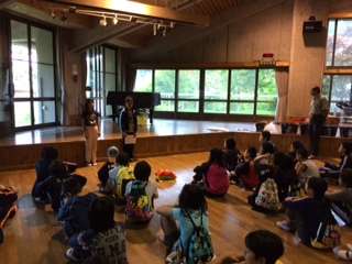 朝の集いです。今日の目標をみんなで確認して,今日の活動開始です。