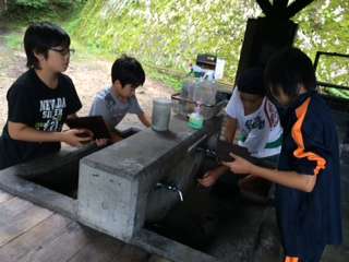 クラフト「焼き杉板」をしています。「焼き杉板」に長期宿泊学習の思い出などを書いています。出来上がりが楽しみですね。