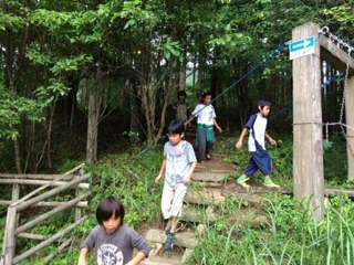 「焼き杉板」が終了してアスレチックを楽しんでいます。いよいよ長期宿泊学習の終わりが近づいてきました。