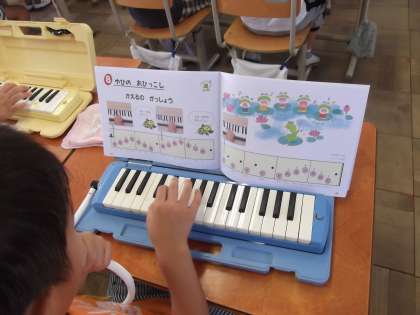 けんばんハーモニカを使って「かえるのうた」の合奏練習をしていました。ずいぶん指がスムーズに動くようになってきています。