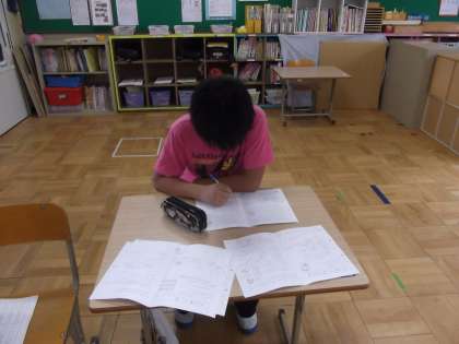 育成学級運動会に向けての準備や6年生は,算数のプリント学習をしていました。
