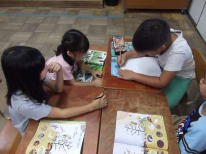 身近な生きものについて話し合っています。生きものについて新たな発見があったようです。