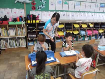 リズムに合わせてけんばんハーモニカの練習をしていました。とても楽しそうに練習していました。