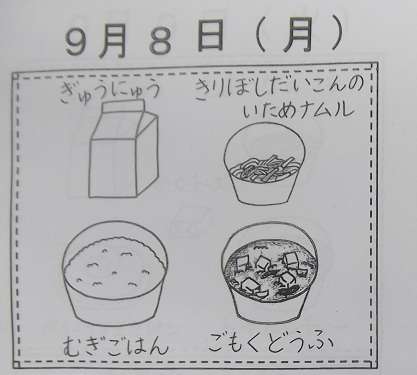 *お詫び:本日の給食の写真が撮れませんでした。ごめんなさい。