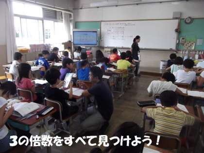 算数の時間に「倍数」の勉強をしました。0から100?までの数で3の倍数を見つける学習に意欲的に取り組んでいました。