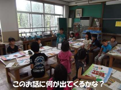 このお話の中に出てくるものはなに?自分の描きたいものをどこに描いたらいいかな?大きさは?など,子どもたちは,お話の世界に入り込んで描いていました。