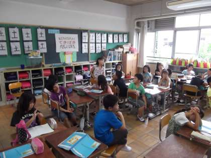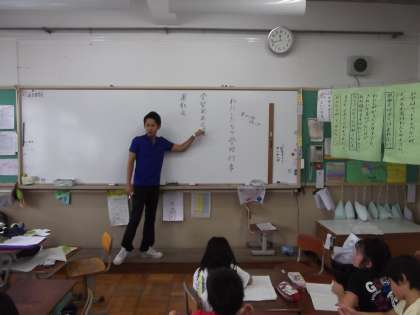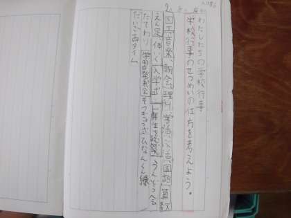 国語の時間に「わたしたちの学校」を学習しています。本校の学校行事についてクラスで話し合っています。