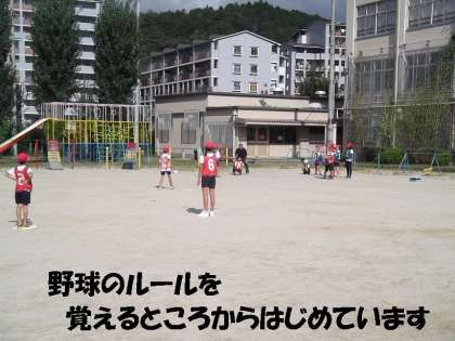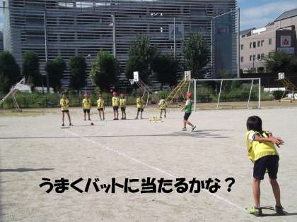 そんな子どもたちですので,なかなかバットにボールが当たりません。ルールを知らない子どもたちも多いようです。