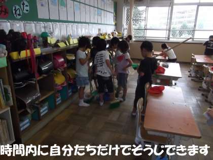 先生や6年生が手をかさなくても,時間内にそうじを終えることができます。