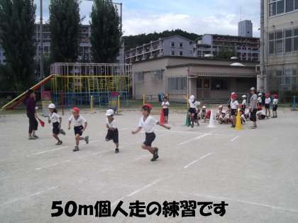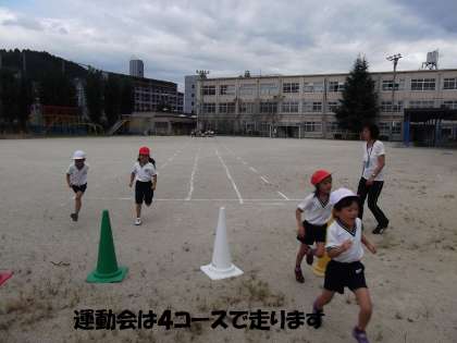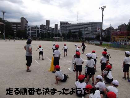 10月の運動会での徒競走「50m走」は,4コースで走ります。今日は,走る組と順番を決めて練習しました。