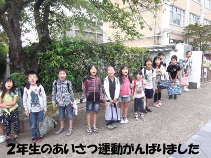 今週一週間,2年生が校門前で朝のあいさつをがんばってくれました。元気に大きな声で「おはようございます」 みんなが気持ちよく登校できました。2年生ありがとう!