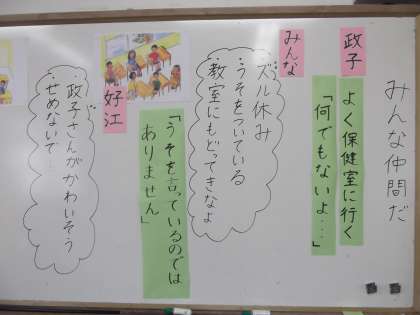 5年1組のクラスで,教育実習生が実習最後の「道徳」の授業を行いました。普段の授業と違い先生も子ども達も緊張した1時間でした。子ども達も先生もとても有意義な時間でした。ご苦労様でした。