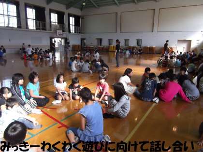 みっきーわくわく集会の後半は,来週10/2(木)に行われる「みっきーわくわく遊び(たてわり遊び)」について各班で話し合いました。