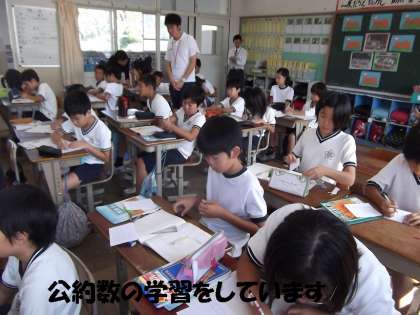 「12と18の公約数は?その中で最大公約数は??」担任の先生からの課題を机間巡視している先生や学生ボランティアさんが,個別にチェックして全員理解ができるまでがんばっていました。