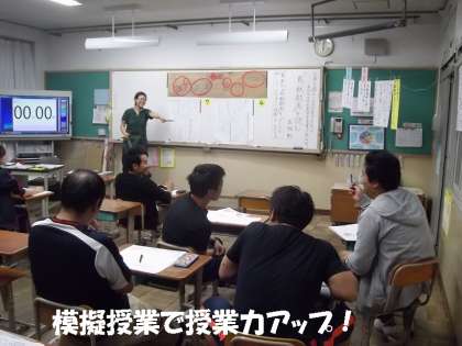 今日は6年生の担任の先生が,「楽しい」「わかった」「できた」があふれる授業つくりのために,他学年の先生たちが子ども役になって模擬授業研修を行いました。
