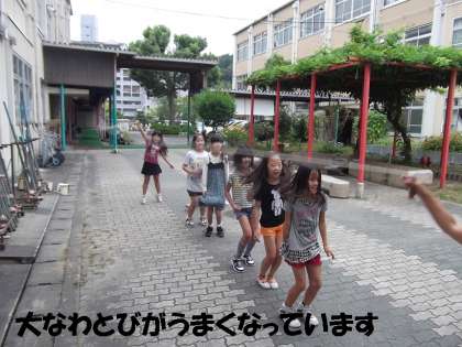 中間休みに,中庭で大なわとびで遊ぶ子どもたちが増えています。先日のふれあいプラザでの大なわとび大会をきっかけに,4年生から流行りだし,今は1年生も楽しんでいます。見ていると,ずいぶん上手にとべるようになっています。