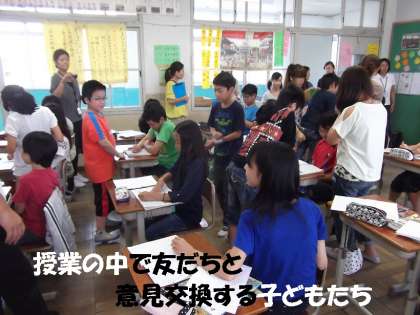 しかし,担任の先生の質問に,しっかり自分の考えを発表したり,友だちと意見交換する場面がみられました。