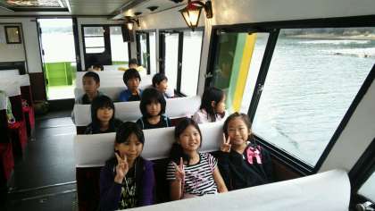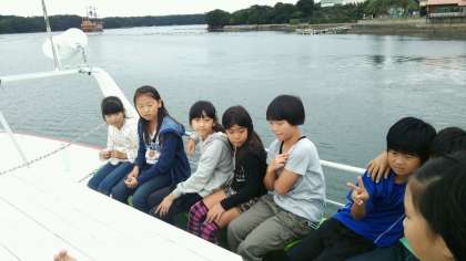 波はおだやかで快適な船旅です。船長さんのガイドで湾の遊覧を楽しんでいます。