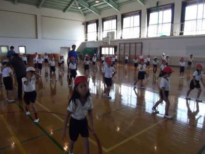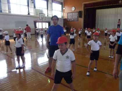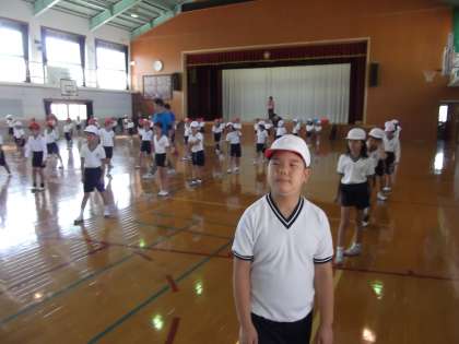 運動会に向けて1年生と一緒に合同で団体演技の練習をしていました。演技にもずいぶん「きれ」がでてきました。