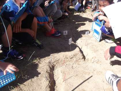 理科の時間に「流れる水のはたらき」を学習しています。今日は,流れ水の量を変えて水のはたらきを調べています。