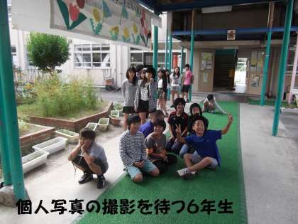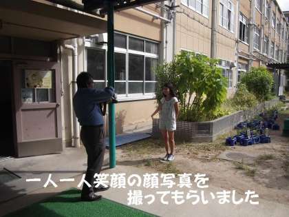 普段のホームページや学校行事の写真とちがって,子どもたちも少し緊張気味でした。無理に笑顔を作ろうとして顔がひきつっている男の子もいました。(笑)