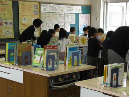 家庭科室の机にずらりと並んだ絵本や読み物に、子ども達の瞳はキラキラ。