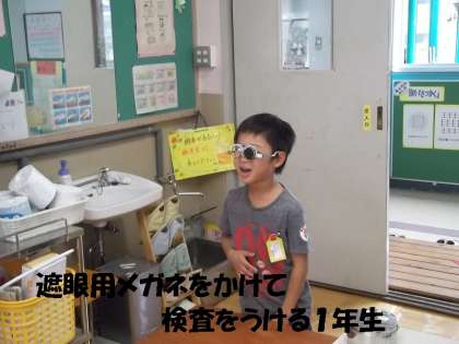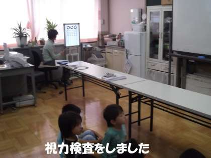 今日は,視力検査をしました。春の検査の時は,上下右左がうまくいえずに,「こっち,あっち」と言っていた子どもたちもいましたが,今日はみんなしっかりと「右・上・左・下」と言えていました。