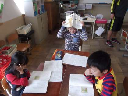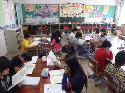 2年1組では,国語の時間に「お手紙」を学習しています。今日は,「お手紙」の音読練習をしていました。