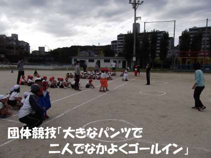 1,2年のページ 大きなパンツで二人でなかよくゴールイン