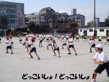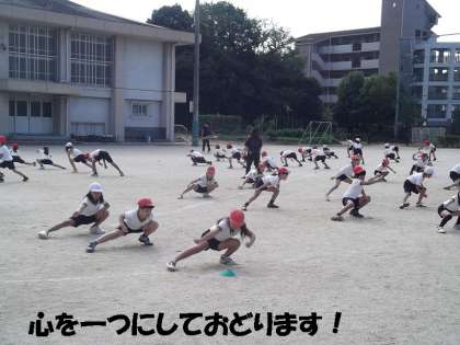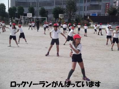 3年4年の団体演技「ロックソーラン」がんばっています。隊形移動も複雑ですが,もうすっかりおどりは覚えました。