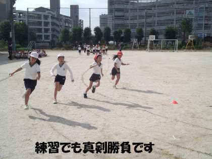 3年のページ 徒競走の練習も真剣勝負