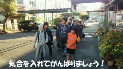 さわやかな秋晴れの休日,早朝7時に6年生が集まりました。