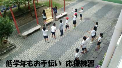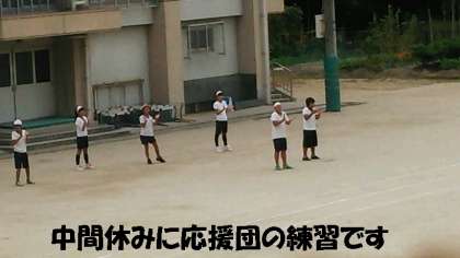 中間休みも運動会練習で盛り上がっています。赤・白応援団が中庭や運動場で声をはりあげて練習しています。