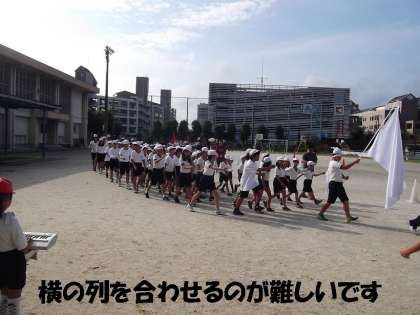 たてわりグループが横一列になって行進します。
