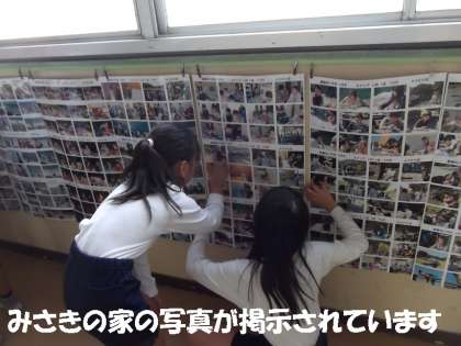 教室前に「みさきの家」の写真が掲示されています。初めての宿泊学習の思い出がいっぱいつまった写真です。