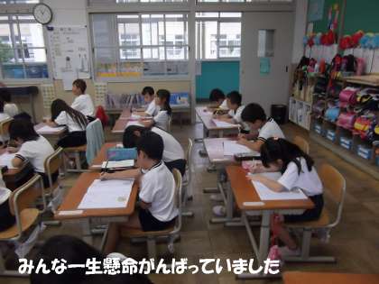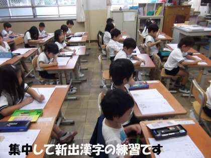 全校練習のあとの時間は,集中が途切れがちになりますが,1年生の様子を見に行くと,いつも以上に集中して漢字練習に取り組んでいました。