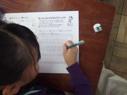 食育の時間に「朝食の大切さ」について学習していました。これからも朝ご飯をしっかり食べて元気いっぱいで過ごしましょう。