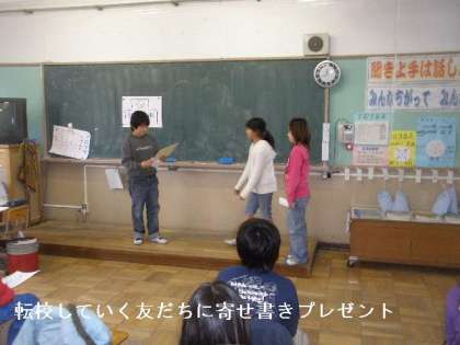 今日は,転校していく友だちとの「お別れ会」兼「お楽しみ会」をしました。楽しく盛り上がったあと,メッセージの交換をしました。