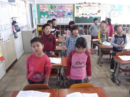 2年1組では,音楽の時間に「ラララ歌おう」「やおやのおみせ」などの歌を元気な歌声で歌っていいました。