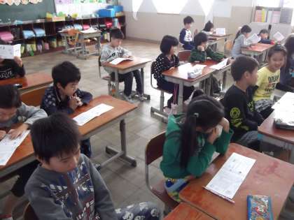 2年2組では,7日(金)に行われる遠足についていろいろと確認していました。当日,雨天の場合もお弁当は,用意してください。遠足は,14日(火)に延期です。