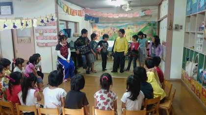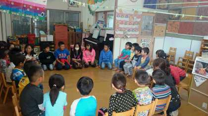 中山保育園に行って,自己紹介から。