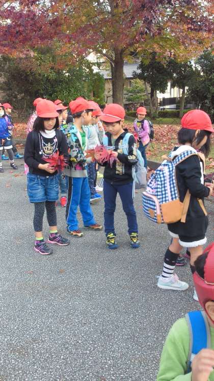 紅葉したはっぱに、大興奮!