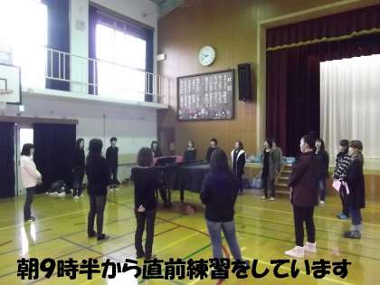 朝9時半から,体育館で直前練習がはじまっています。
