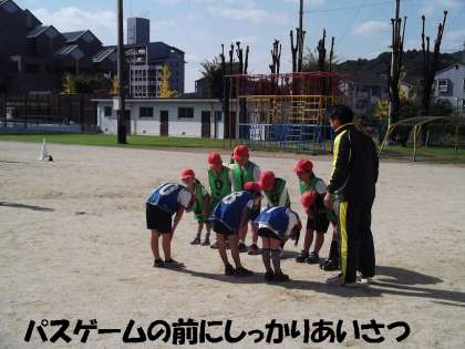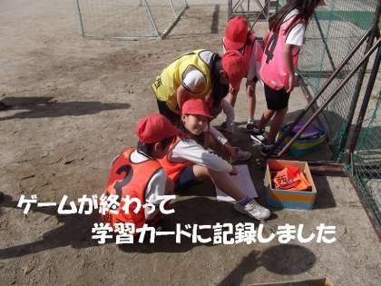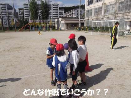 体育で「パスゲーム」をしています。みんなで作戦を立てて,ゲームをし,そして,反省もしっかり自分たちでできていました。